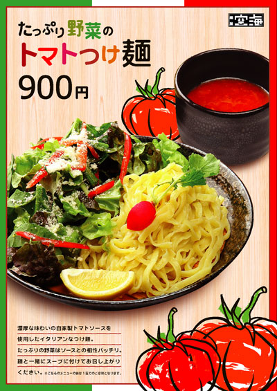 3月1日より、春の限定メニューとして『たっぷり野菜のトマトつけ麺』がはじまりました☆ 以前人気の高かった、トマトラーメンがつけ麺に生まれ変わって新登場!