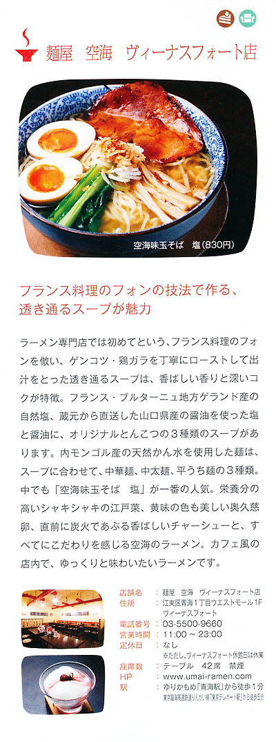 ラーメンの人気店には欠かせない麺・スープ・具、なおかつ店舗のインテリアやグラフィック・オペレーション、そのすべてにこだわり続ける理由、それは麺屋 空海が常に「美味しい麺には、居心地の良い空間・女性一人でもご利用頂けるラーメン店」を目指しているからです。