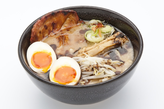 こっくり煮込んだやさしい味わいのとんこつらーめんに、空海特製の半熟トロトロ、奥久慈卵の味玉をトッピングしました。