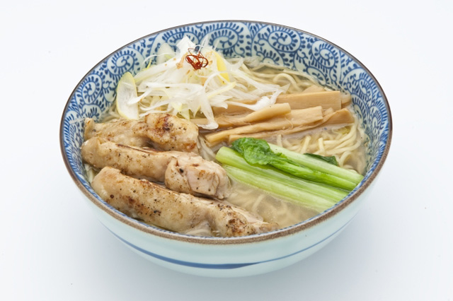 スープで煮込んだ鶏肉を炭火で炙ってトッピングしたヘルシーラーメン。 選べるスープ:塩・醤油